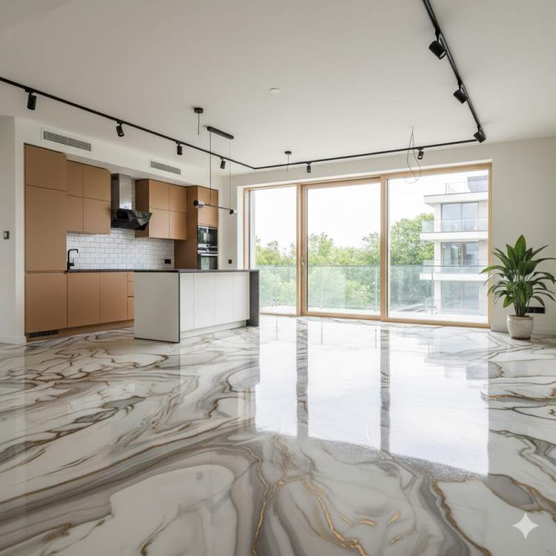 Вопреки стереотипам, эпоксидные составы находят все большее применение в жилых помещениях. Особенно актуальны они в зонах с повышенной проходимостью и влажностью: прихожих, кухнях, ванных комнатах и коридорах. В отличие от ламината, такое покрытие абсолютно не боится воды, а отсутствие швов, в отличие от плитки, исключает появление грибка и плесени. Высокая износостойкость гарантирует, что пол не потеряет вид от постоянного контакта с обувью или когтями домашних животных.